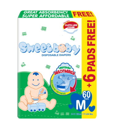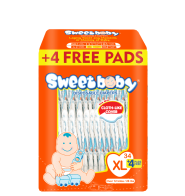Sweet Baby Regular Econo Pack Double Extra Large 28 Pads Specifications: For babies over 15 Kilos Cloth-like cover Leak Guard Super Absorbent Pad Refastenable Tape Available in: M BUY NOW L BUY NOW XL BUY NOW XXL BUY NOW